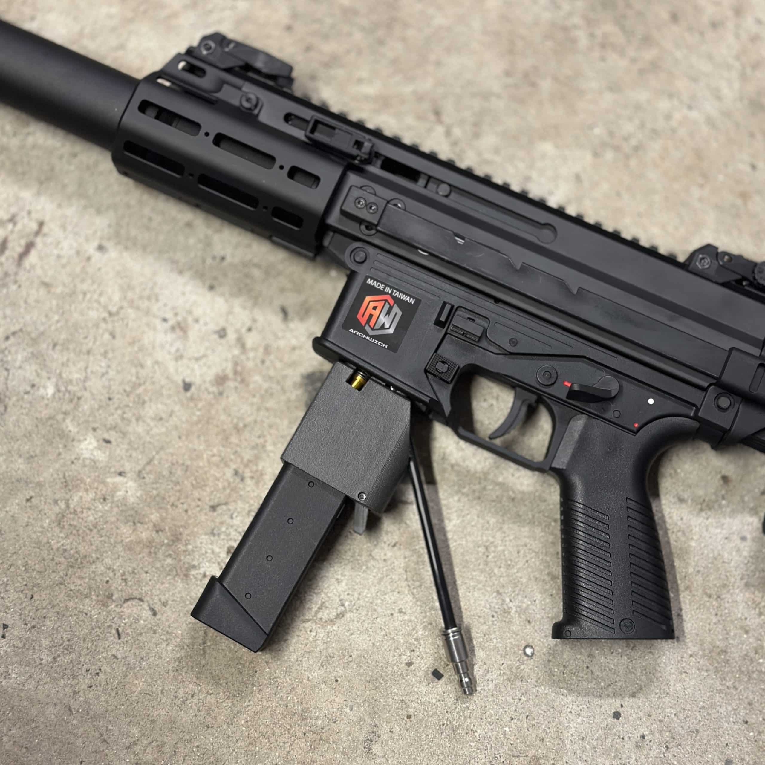 ARCHWICK APC9K ARP9 AdapterUpgrade your ARCHWICK APC9K with the TAPP ARP9 Adapter for high-speed, high-capacity gameplay. This pre-built, plug-and-play adapter allows the use of ARP9 AEG magazines, combining compact size with excellent capacity. Built in the USA with high-strength Nylon PA12 with the option of upgrading to PA11 Carbon Fiber, it offers reliable performance and streamlined reloads.Key Features: