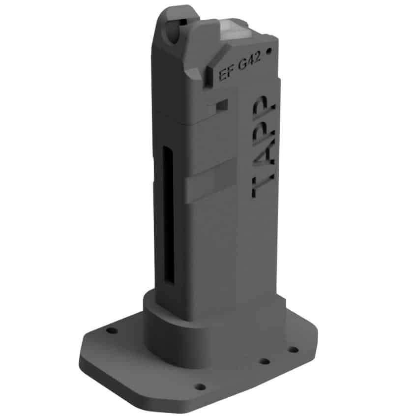 Boost endurance with the TAPP Elite Force GLK 42 Green Gas Drum Adapter. Pair your GLK 42 with a ~400 BB green gas (propane) drum for long strings of fire and fewer reloads.