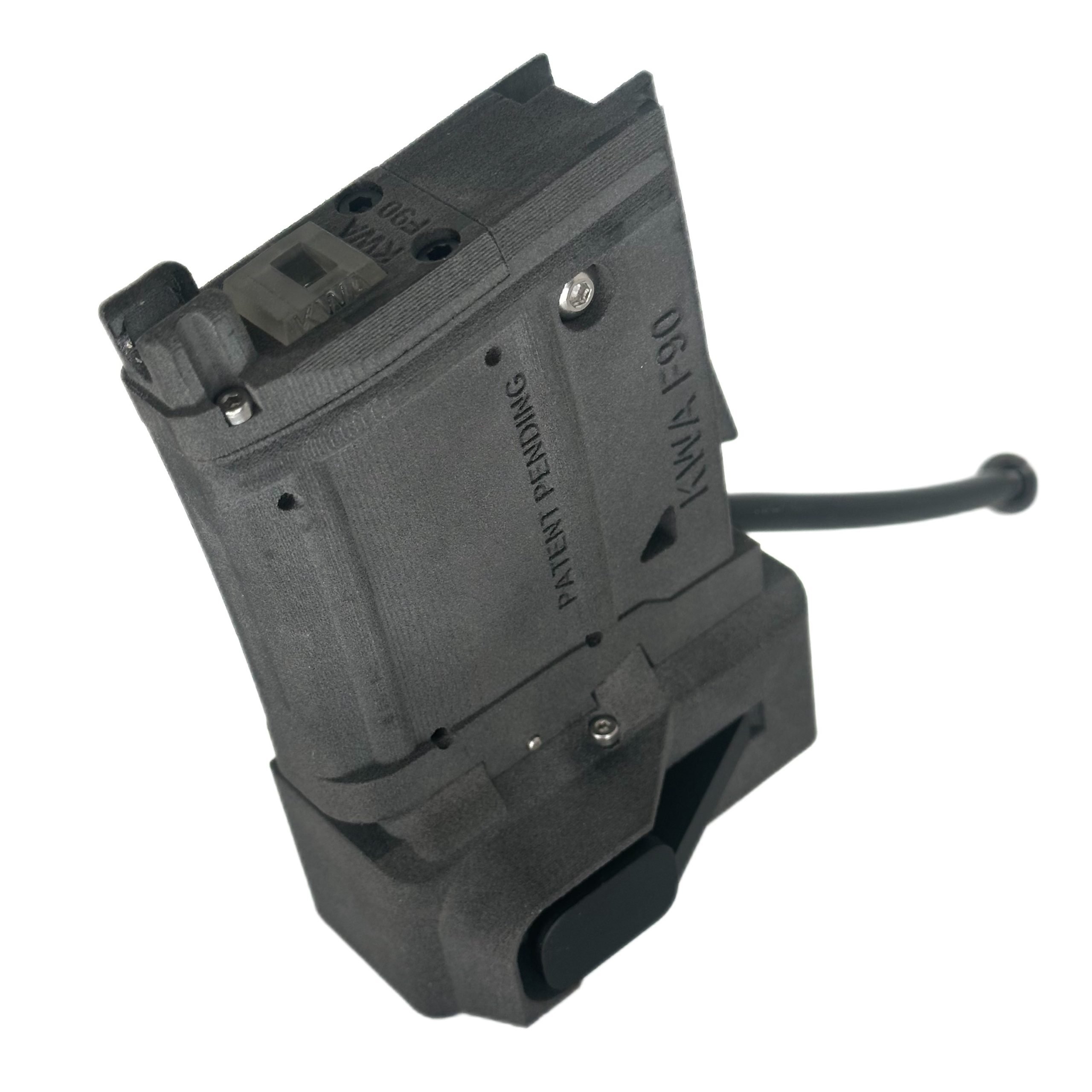 The KWA F90 is a modern bullpup airsoft rifle, celebrated for its compact design and balanced ergonomics, which allow for exceptional maneuverability in close quarters. The TAPP KWA F90 M4 Adapter enhances this innovative platform by enabling the use of M4 AEG magazines, significantly increasing your magazine capacity and improving reload efficiency. Designed and built in the USA, this pre-built, plug-and-play adapter ensures your KWA F90 is always ready for action, seamlessly integrating with M4 magazines and utilizing High Pressure Air (HPA) for consistent and reliable performance.