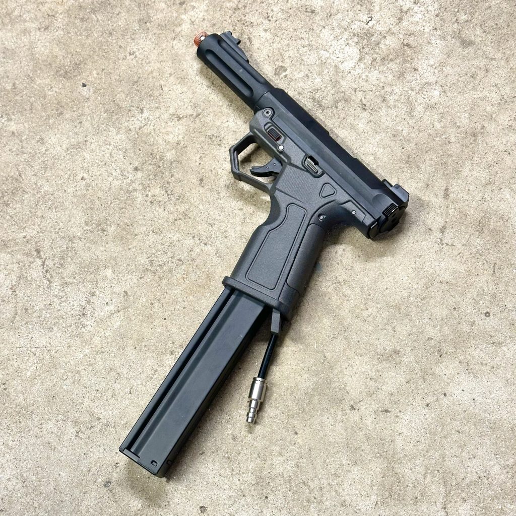 • Clean Air Line Routing: HPA line exits cleanly through the bottom of the grip for a compact, snag-free setup—ideal for dynamic movement.